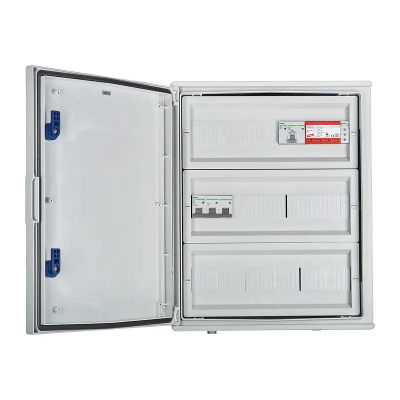 Anschlussschaltanlage AC hermetisch IP66 EMITER mit Überspannungsbegrenzer AC Dehn Typ 1+2, 80 A 3F, FR 100 A, Phasensig.