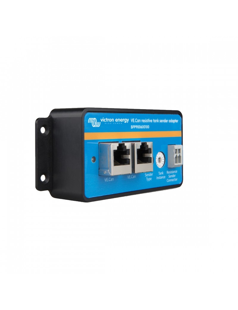 VE.Can-Adapter für Resistive Tank Sender ermöglicht den Anschluss eines Standard-Resistive Tank Senders an das Color Control GX.Er ist sowohl mit dem europäischen 0-180-Ohm-Standard als auch mit dem amerikanischen 240-30-Ohm-Standard für Tankfüllstandstransmitter kompatibel und hat eine Genauigkeit von ±1%.Eine Konfiguration von resistiven Tankmessumformern für Kraftstoff, Trinkwasser, Drainagewasser, Brunnenwasser, Öl und Abwasser ist problemlos möglich.Er unterstützt bis zu 16 Tanks jedes Typs.Die Einstellungen des Gerätes können mit zwei Drehschaltern vorgenommen werden, die Stromversorgung des Adapters erfolgt über VE.Can.